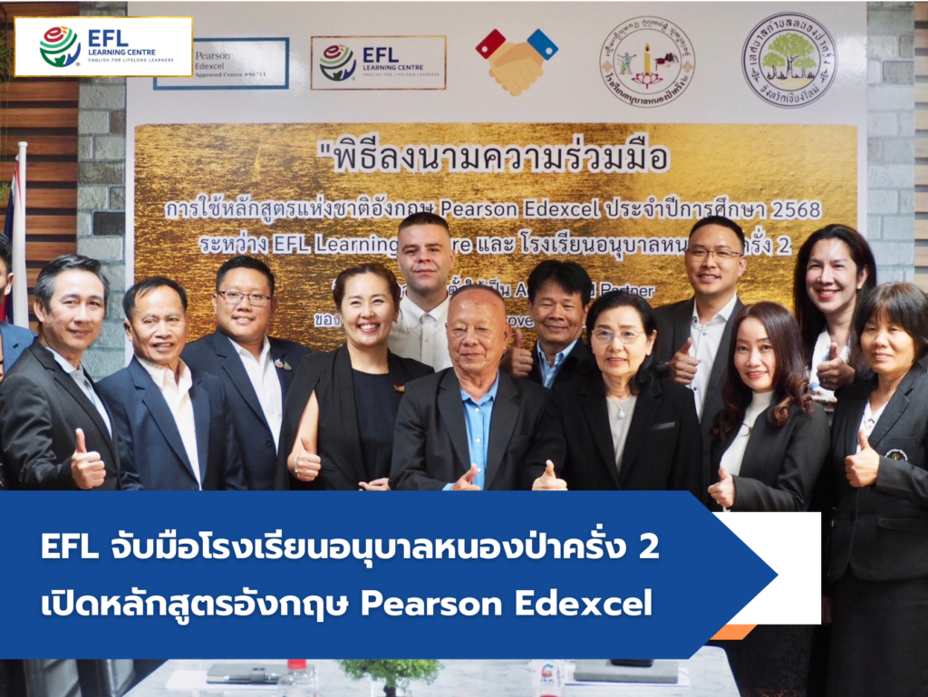 EFL Learning Centre เปิดหลักสูตรอินเตอร์ Pearson Edexcel ร่วมกับโรงเรียนอนุบาลหนองป่าครั่ง 2 พร้อมเรียนฟรี 100% เสริมพื้นฐานภาษาอังกฤษตั้งแต่ปฐมวัย
