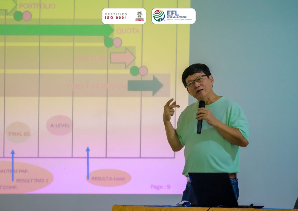 อีกหนึ่งกิจกรรมดีๆ จาก EFL Learning Centre ที่จัดขึ้นเพื่อเตรียมความพร้อมให้น้องๆ ได้ก้าวสู่เส้นทางการศึกษาต่อระดับมหาวิทยาลัยอย่างมั่นใจ ด้วยเป้าหมายที่ชัดเจนและแผนการเรียนรู้ที่เหมาะสมกับแต่ละคน